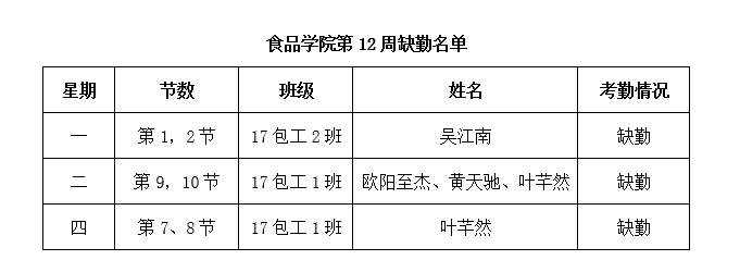 本周相对缺勤人数较少,希望同学们能保持良好的学习习惯,做到上课不缺勤,祝同学们学习、生活愉快!