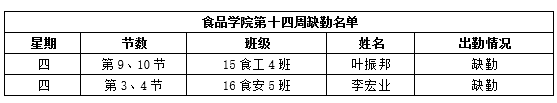 本周相对缺勤人数较少,希望同学们能保持良好的学习习惯,做到上课不缺勤,祝同学们学习、生活愉快!