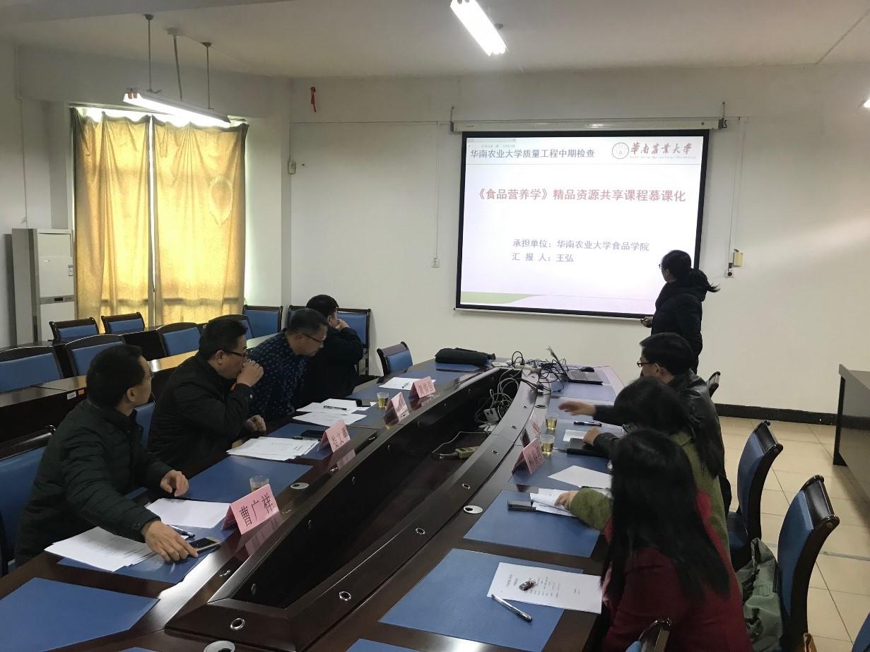 2019年1月3下午,我院开展了院级慕课建设中期检查以及2019年度学院教学质量与教学改革工程项目申报评审工作,华南理工大学食品科学与工程学院副院长娄文勇教授、暨南大学药学院副院长孙平华教授、华南师范大学生命科学学院生物工程系主任黄儒强教授、我校教务处教学研究与评估中心曹广祥科长以及我院柳春红教授组成的专家组分别对我院4个“慕课项目”进行了中期检查,8个“教学质量与教学改革工程”申报项目进行了评审。我院副院长方祥主持了本次会议。