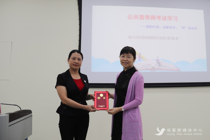 活动伊始,刘丽葵副院长代表学院欢迎各位嘉宾的到来,并为唐戈教授颁发讲师聘书。唐弋教授主打营养学基础、各类人群营养、营养调查与评价等内容,多年来一直从事医学教育临床医疗工作,在营养配餐、心理、预防医学及卫生法律法规等领域有较丰富的经验。