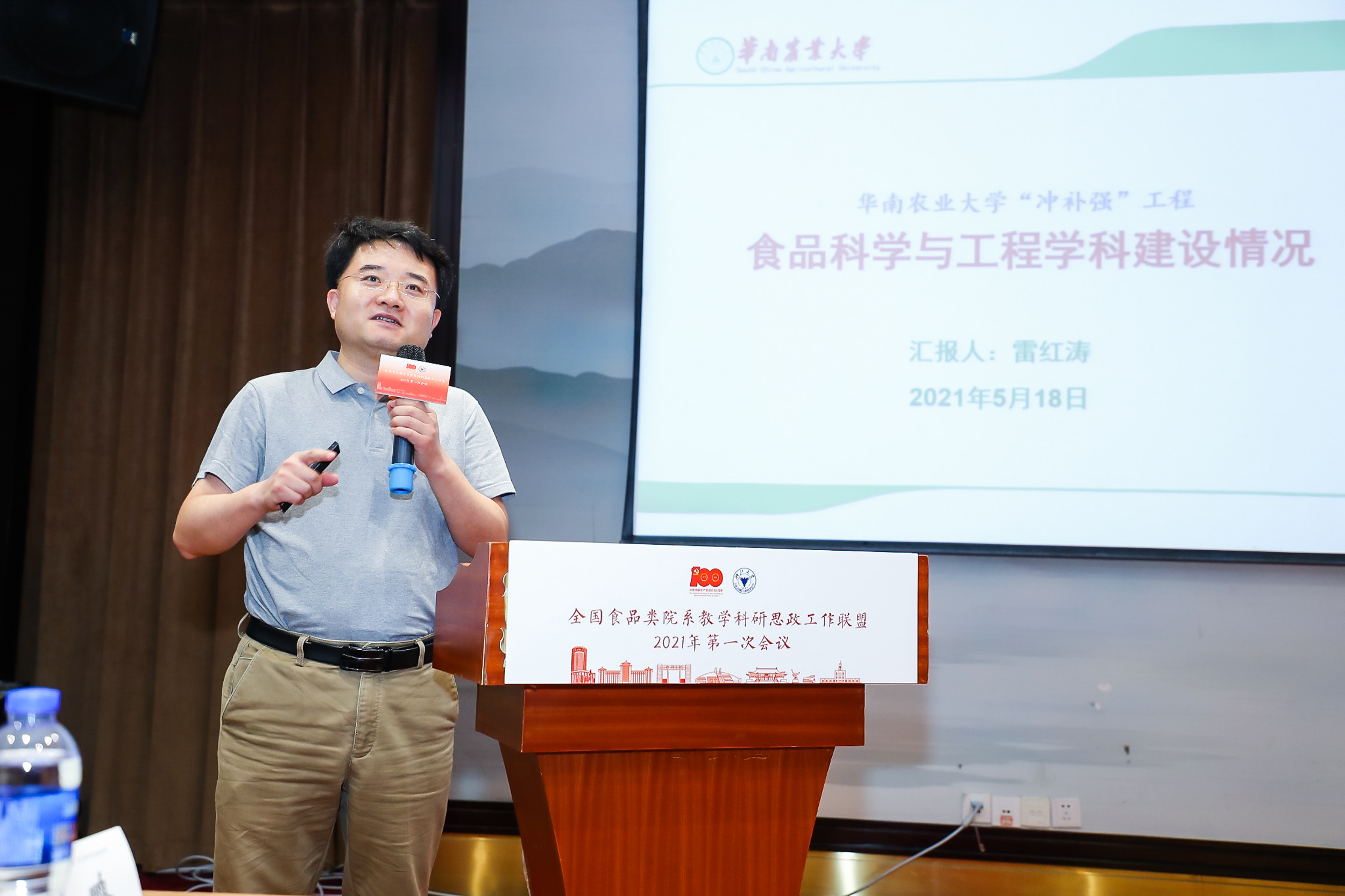 围绕“乡村振兴”“健康中国”等国家战略,来自全国各大食品类院系的党委书记、院长、专家教授们针对新时代食品类院校在教育教学、科学研究、党建与思政工作等方面进行了广泛而热烈的讨论。雷红涛院长代表我院做了题为“华南农业大学食品科学与工程学科建设”的专题报告,报告主要分为学科简介、建设成效、努力方向三个方面,介绍了学院的历史沿革、学科发展、研究方向、科研平台、研究队伍,围绕学院师资队伍建设、教育教学成果、学生培养质量、科学研究、社会服务、国际交流合作进行了重点汇报。