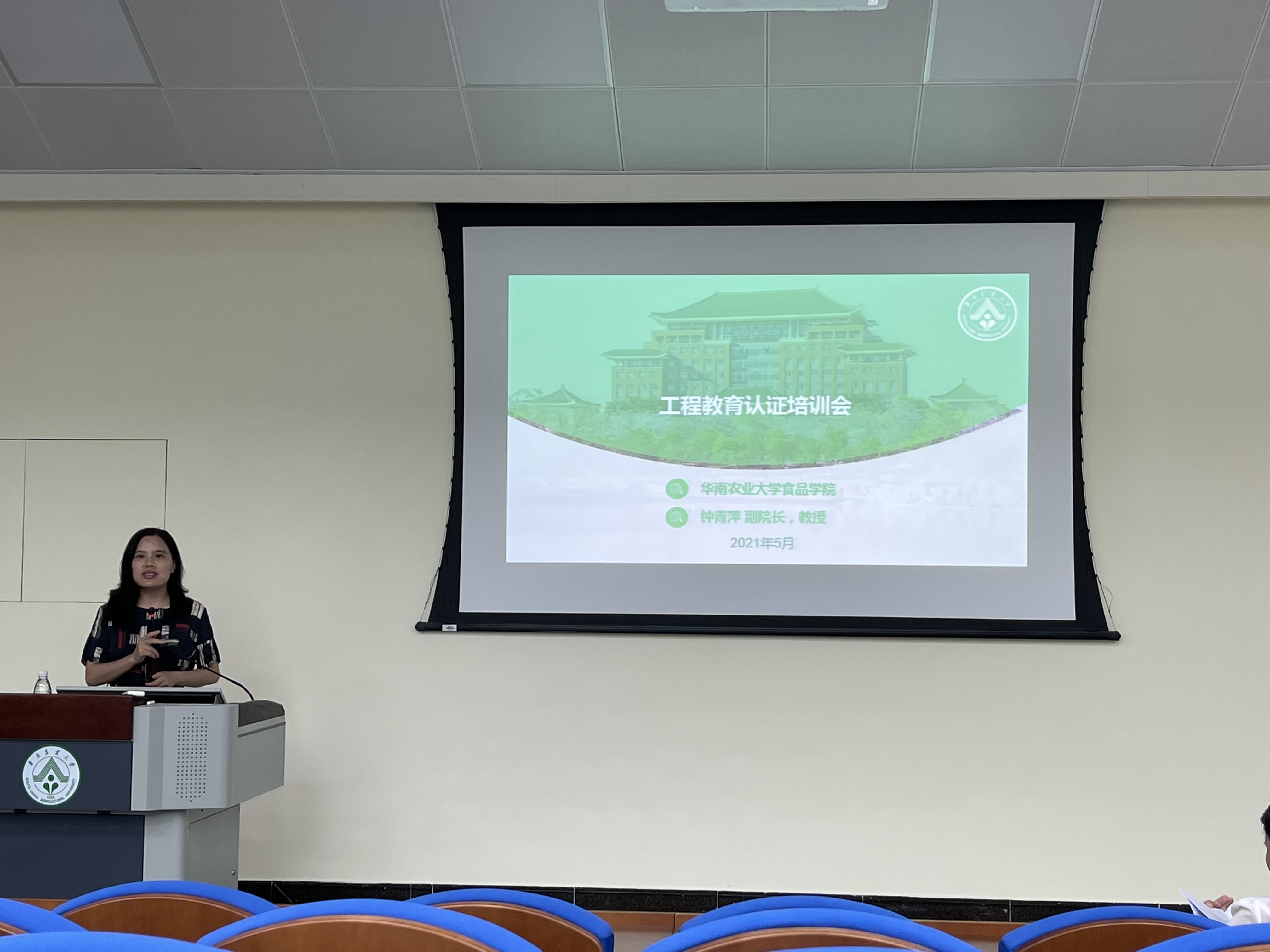 学院钟青萍副院长向各位老师通报了我院食品科学与工程专业工程教育认证的基本情况,指出,经过了前期两年多的准备,目前已经进入最后准备阶段。并为老师们详细阐述了工程教育认证的概念和内容,阐明了学院为什么要进行工程教育认证,当前国内外工程教育认证的现状等问题,重点说明了工程教育认证的三大理念,即“学生中心、产出导向、持续改进”。
