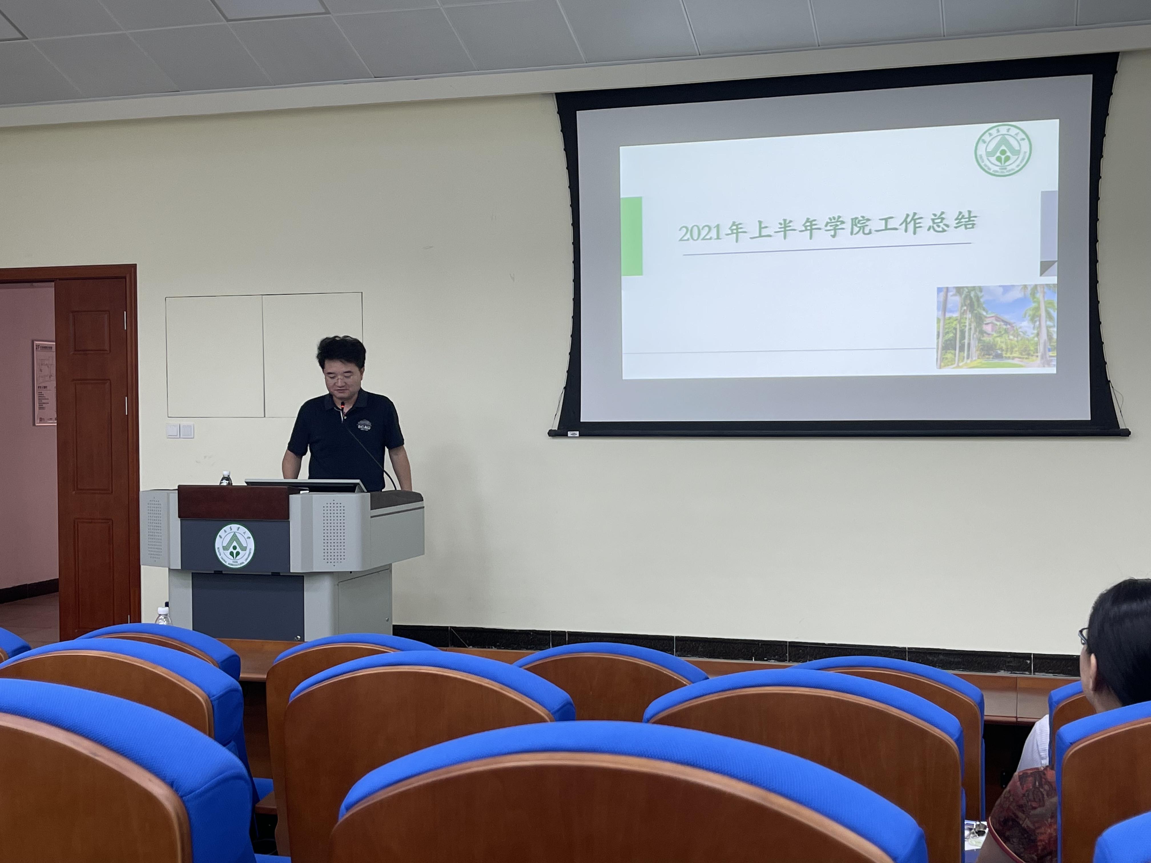 首先,学院院长雷红涛做了2021年上半年学院工作总结,对上半年来学院在党建、教学、科研、学生管理、社会服务、校友联络等方面的工作成绩与不足向全体教工进行了汇报介绍,并着重阐述了学院下半年主要工作要点,表示要发挥党建引领,大力加强学科建设。