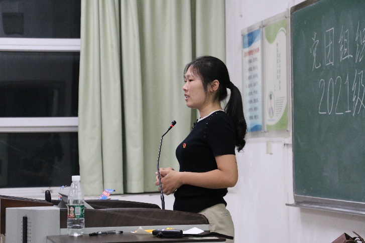 会议伊始,食品学院团委书记王曾惠老师发表以“强国有我,请党放心”为主题的团员教育,以刘胡兰和抗疫一线的“90后”“00后”为例,要求新生增强团员意识和身份认同感。