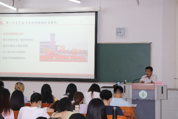 为学习贯彻习近平总书记在庆祝中国共产党成立100周年大会上的重要讲话精神,引导研究生新生在学思践悟中坚定理想信念,弘扬光荣传统、赓续红色血脉,我院党委书记魏剑波于9月6日上午在教六201向全体研究生新生作中国共产党成立100周年庆祝大会重要讲话的学习分享。