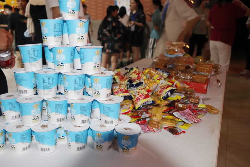 游园活动开始后,同学们纷纷驻足参与其中。活动现场入口处就是美食区,到场同学都可领取月饼等节日美食以及由华农酸奶赞助的纯白酸奶、华农原实公司赞助的品味初心乳酸菌饮料和励肌泉电解质水等饮品。许愿墙上铺满大大小小的心愿,寄予了同学们对未来生活的美好期望。每个游戏区域都回荡着同学们的欢声笑语,在猜灯谜等游戏中大家充分感受到了传统游戏的快乐和成就感。通过赢得游戏同学们可以获得相应数量的积分卡,最后可到礼品兑换处兑换精美的小礼品。现场节日气氛浓厚,学生们参与的热情高涨,工作人员也忙得不亦乐乎。
