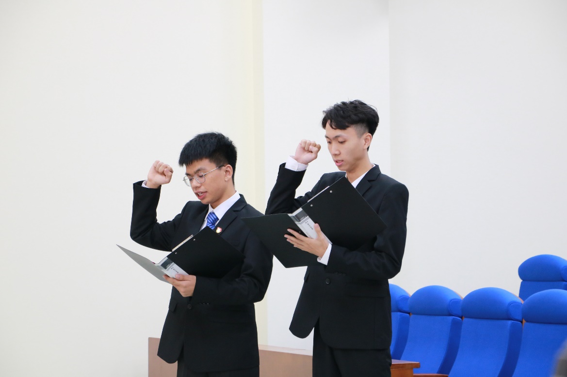 宣读新一届学生会常设机构和主席团名单后,新一届主席团成员进行了宣誓。他们郑重宣誓将服从学校大局,心系学院发展,支持共青团工作,落实共青团改革,坚持以服务同学为核心,做到带头学习、勇担责任,弘扬食品精神、树立食品风貌。