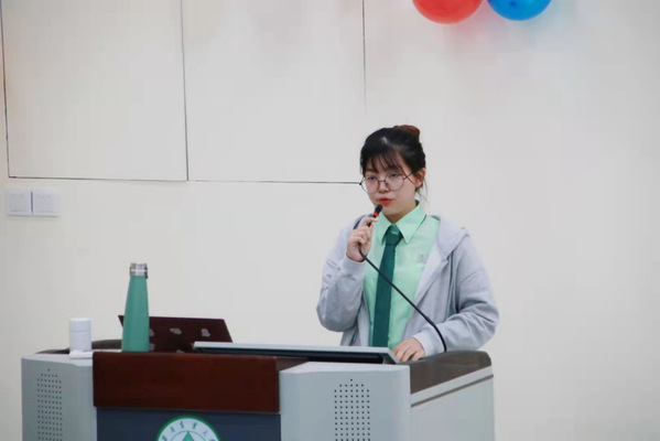 接下来,第二十六届第二任团委副书记林娴发言。她建议同学们要增强抗压能力,以乐观的心态面对困难与挫折,并鼓励大家积极团建,部门之间多多交流,多认识新朋友。