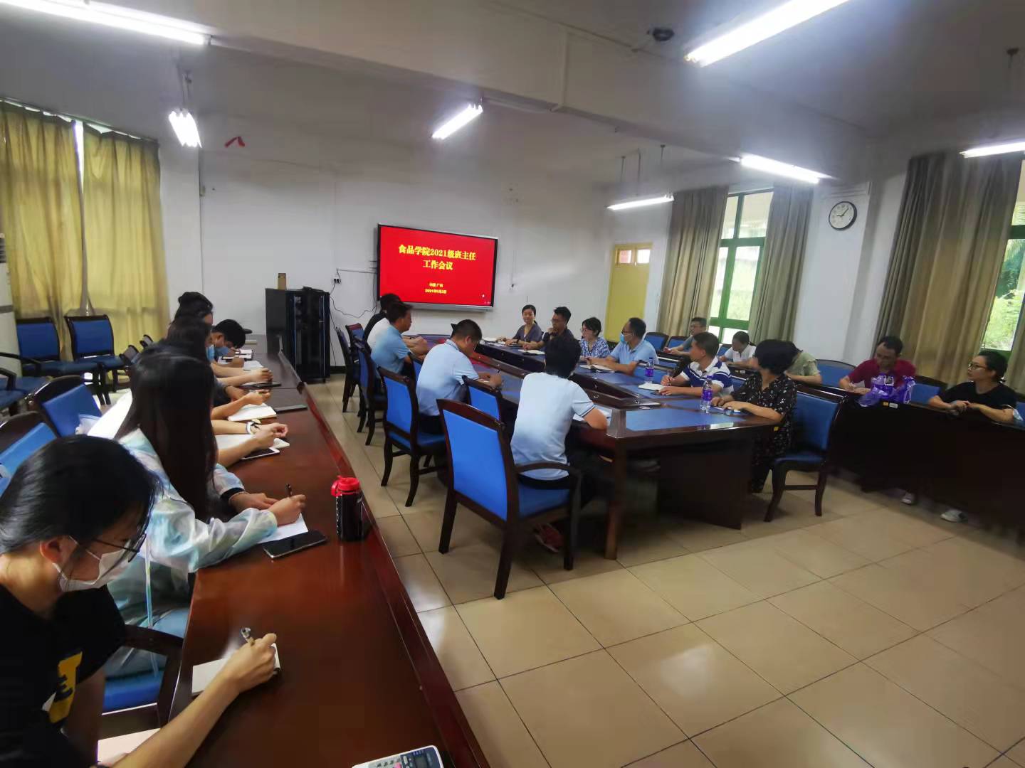 为做好2021级研究生新生入学工作安排,2021年09月02日上午,2021级研究生班主任工作会议在食品学院院楼301举行。学院党委书记魏剑波、副书记陈晓梅、各班班主任、年级辅导员出席了本次会议。