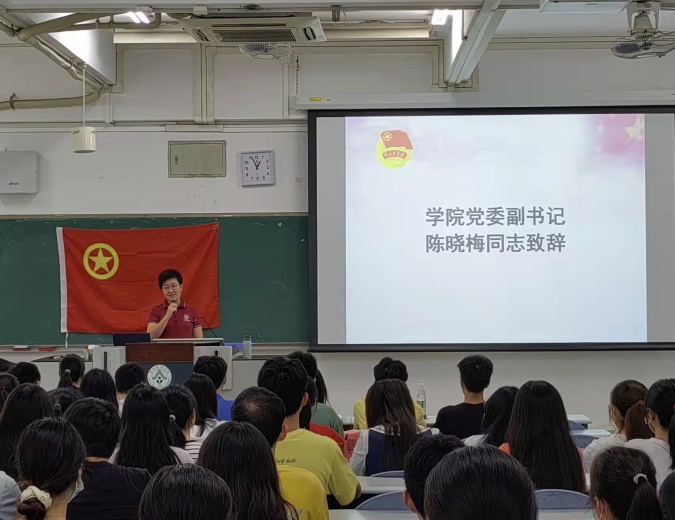 2021年11月6日中午,食品学院“青马工程”培训班、学“习”社第2020-2021期结业暨2021-2022期开班典礼在第五教学楼B栋304顺利举行,院党委副书记陈晓梅老师、团委书记王曾惠老师出席会议,2020-2021期与2021-2022期院青马班、学“习”社全体成员参加会议,会议由院青马班、学“习”社临时团支部书记李健智主持。