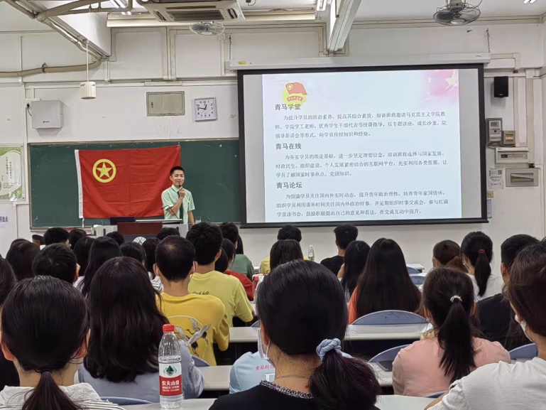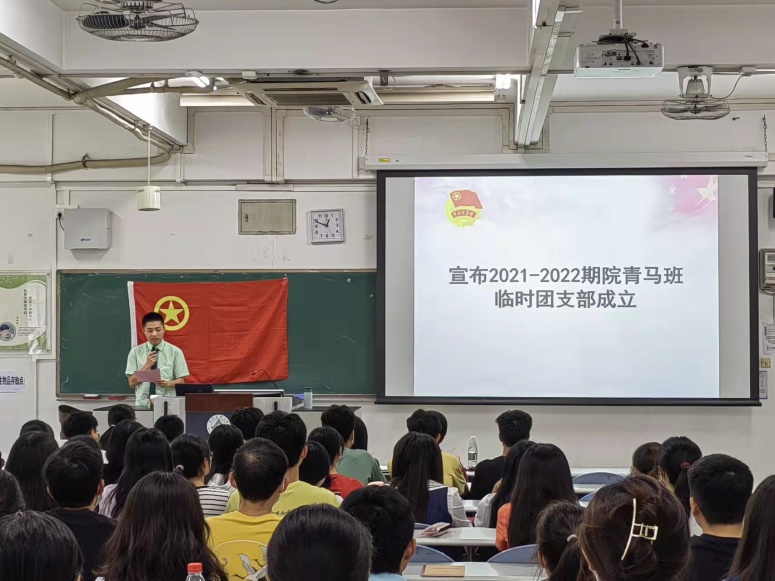 紧接着,主持人李健智同志庄重宣布2021-2022期院青马班、学“习”社临时团支部成立并宣布青马班、学“习”社临时骨干名单。2021-2022期院青马班、学“习”社临时团支部的成立是此次开班典礼一项很重要的议程。为了进一步在青马班、学“习”社中开展团的工作,提高青马班、学“习”社成员的政治觉悟、理论水平、业务能力,全面拓展青马班、学“习”社全体成员的综合素质,进一步增强青马班、学“习”社成员的向心力、亲和力、凝聚力。根据《团章》和青马班、学“习”社共青团员分布情况,共青团华南农业大学食品学院委员会经考察、政审、讨论和评议,批复同意成立华南农业大学食品学院青马班、学“习”社临时团支部的申请。临时团支部将引领院青马班、学“习”社发展,并有力推动我院“培养青年马克思主义者”重点工作的开展,在团组织内发挥团支部战斗堡垒作用和团员先锋模范作用,带头执行上级团组织的决议,按时完成上级团组织交办的各项工作,意义非常之重大。