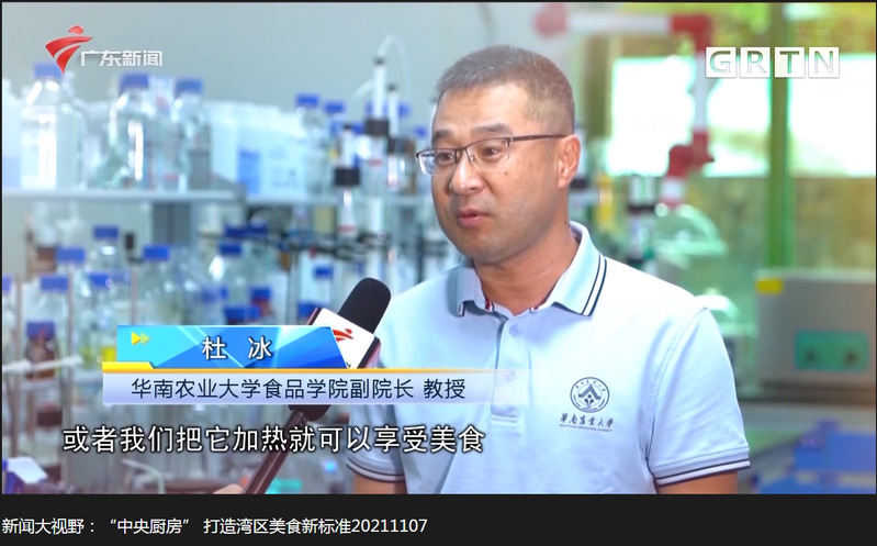 11月7日,广东广播电视台新闻频道专题节目《新闻大视野》播出“中央厨房,打造湾区美食新标准”,我院杜冰教授接受采访。