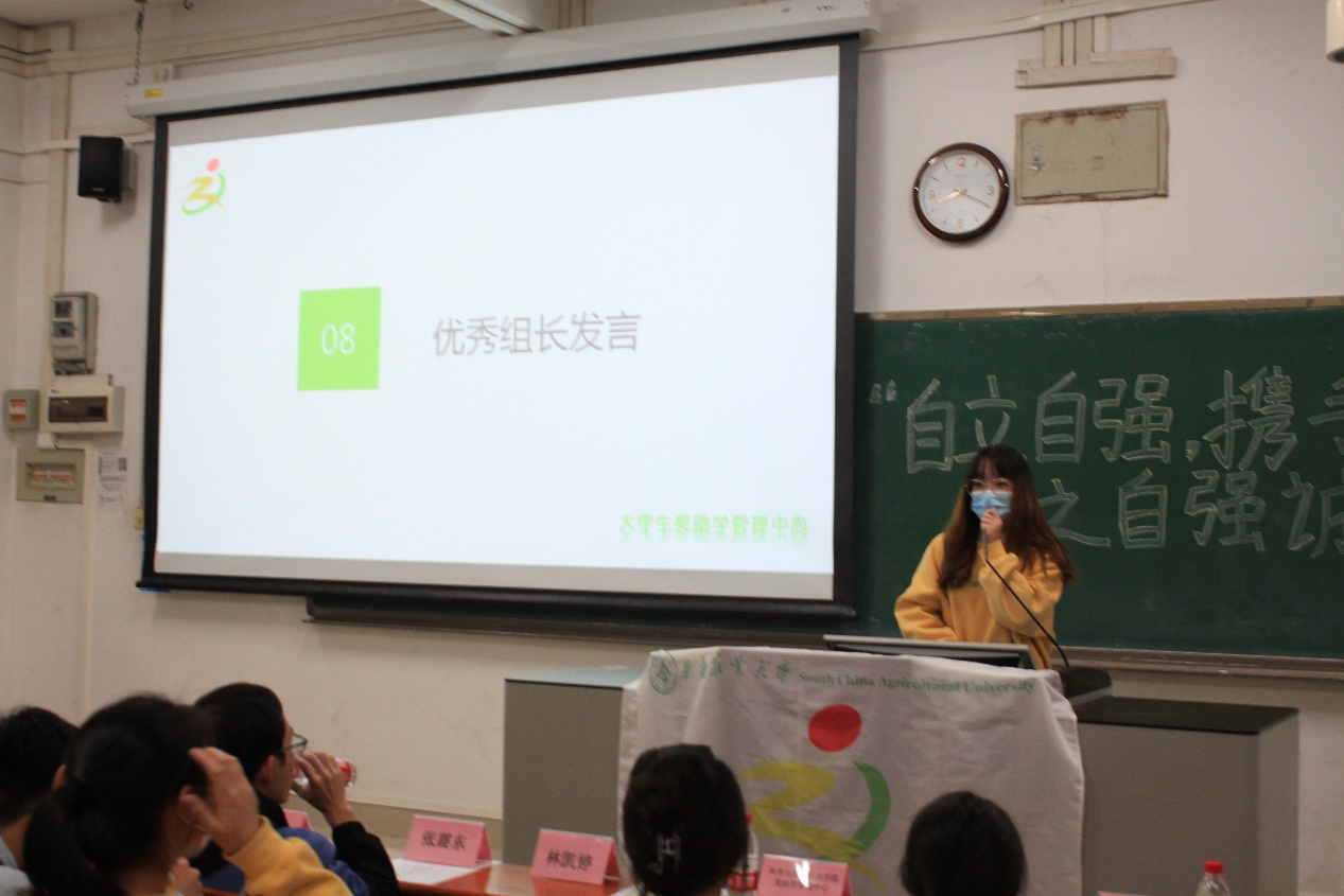 首先,诚信自强之星林凯婷进行了发言,希望在座的自强小组成员都要做到做自己,突破自我、磨砺自我,并把学习放在第一位,规划好大学的每一年。