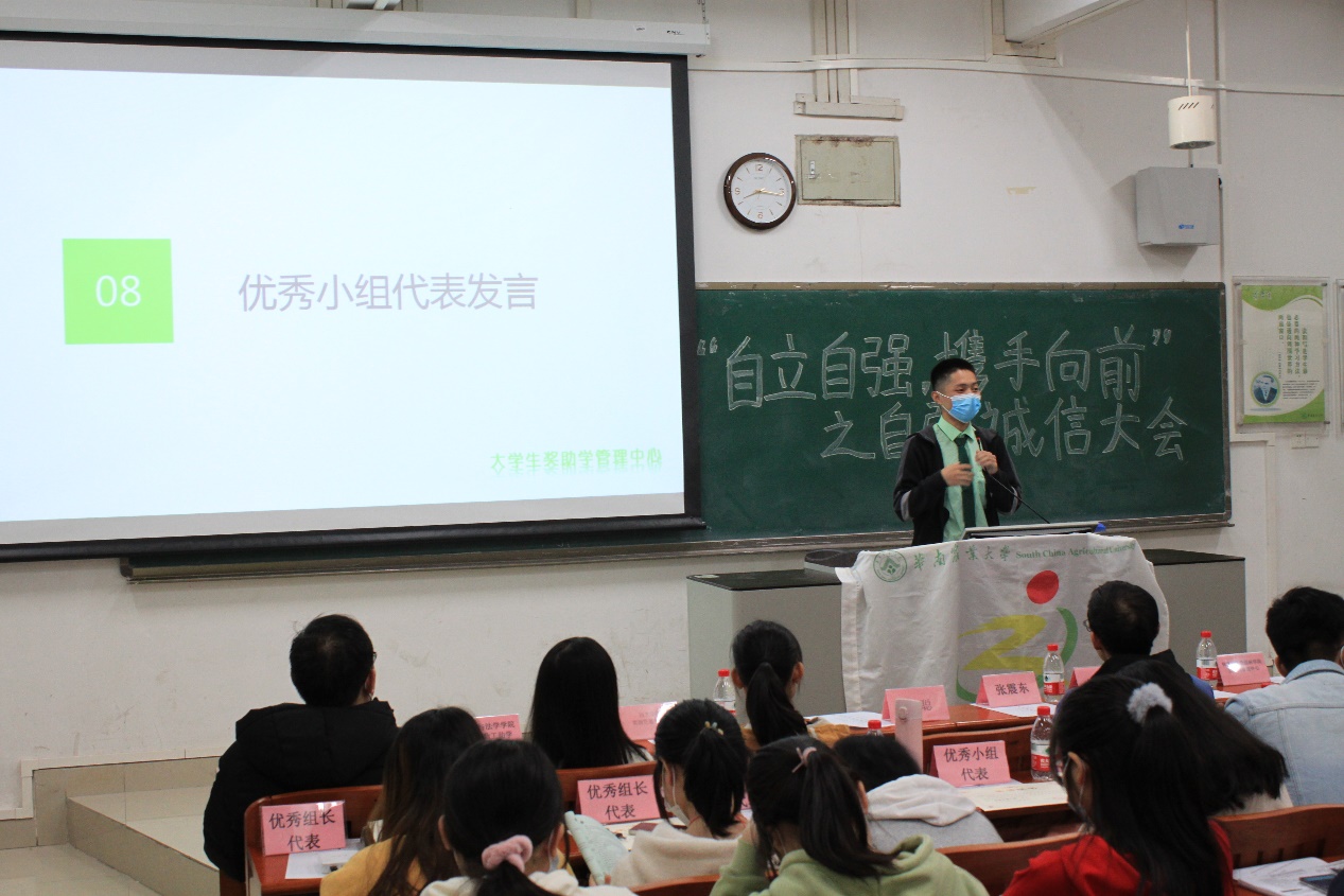 大会宣誓环节,由自强小组成员沈华滢带领,全体自强小组成员庄严宣誓,并签写自律承诺书。