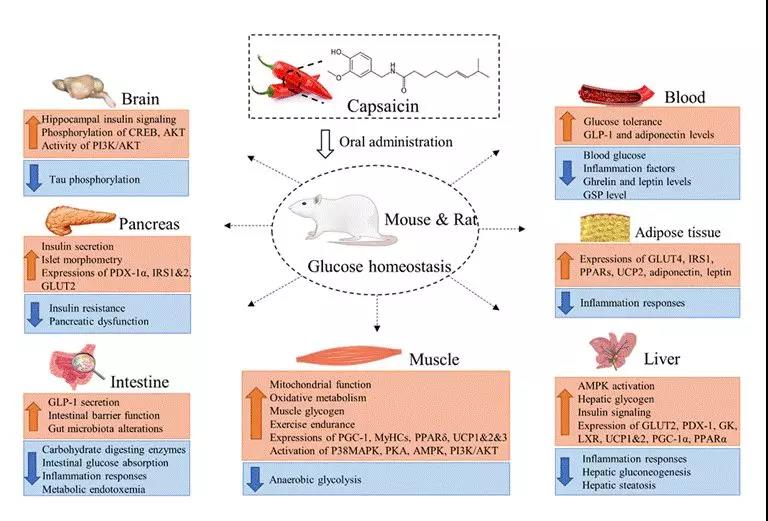 (辣椒素在不同细胞模型中调节葡萄糖稳态的机制)