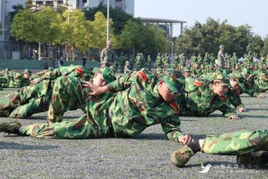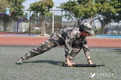 下午三时,“食品兵”们重聚启林南训练场,开始新内容的学习。“卧倒!趴下!”教官们的口令声此起彼伏,“食品兵”们的动作整齐划一。他们目光坚定,身体紧贴地面,借助手臂与腿的力量在草坪上匍匐前进,汗水浸湿脸颊也不改意气风发的面貌。“食品兵”们在练习匍匐之余依次有序进行95式步枪的认识与持枪姿势的学习,第一次接触枪支的“食品兵”们热情高涨,在教官们的指导下有模有样地完成各个动作。枪械知识的学习激发了爱国卫国的意识,增强了实战应战的本领。