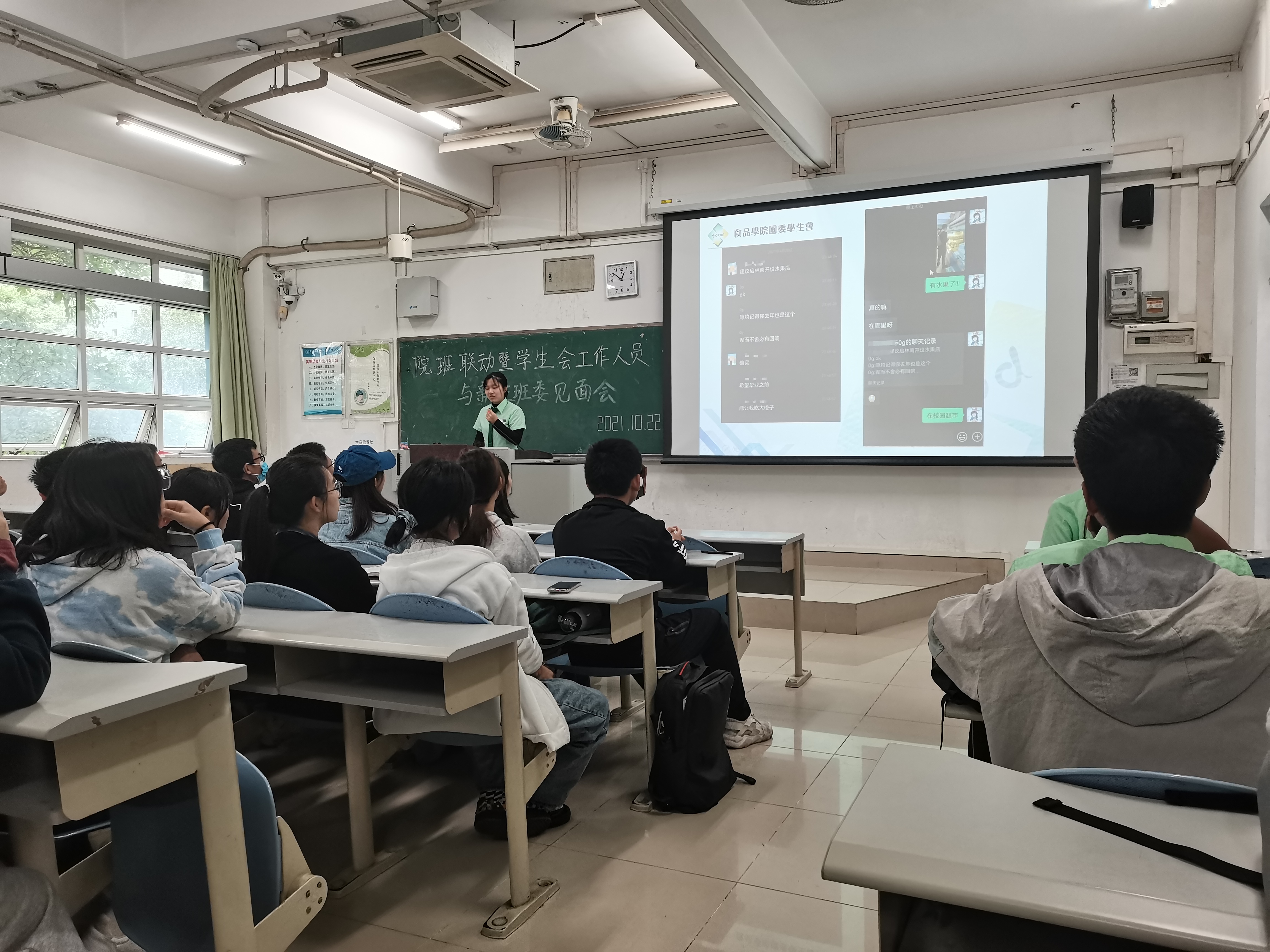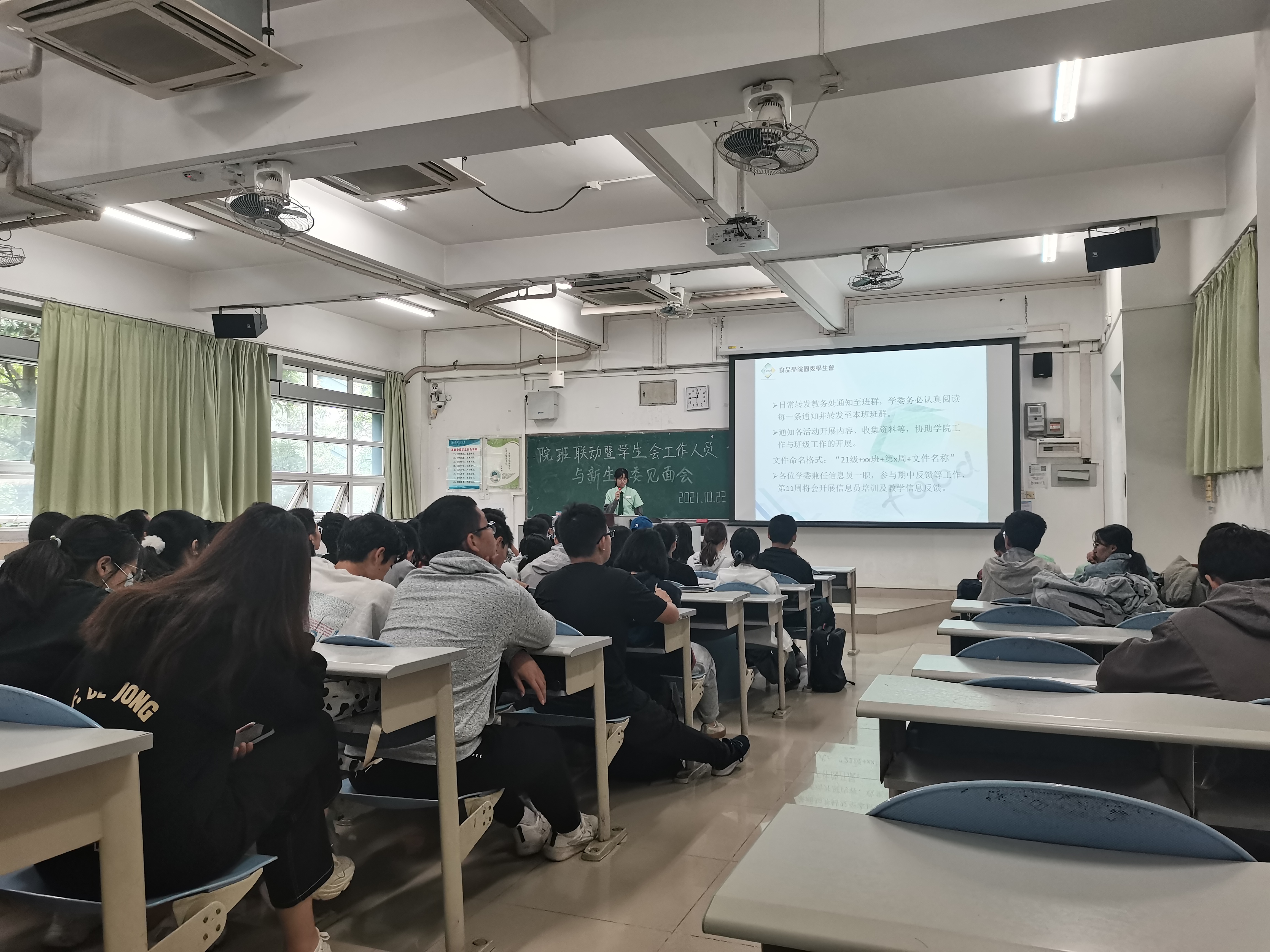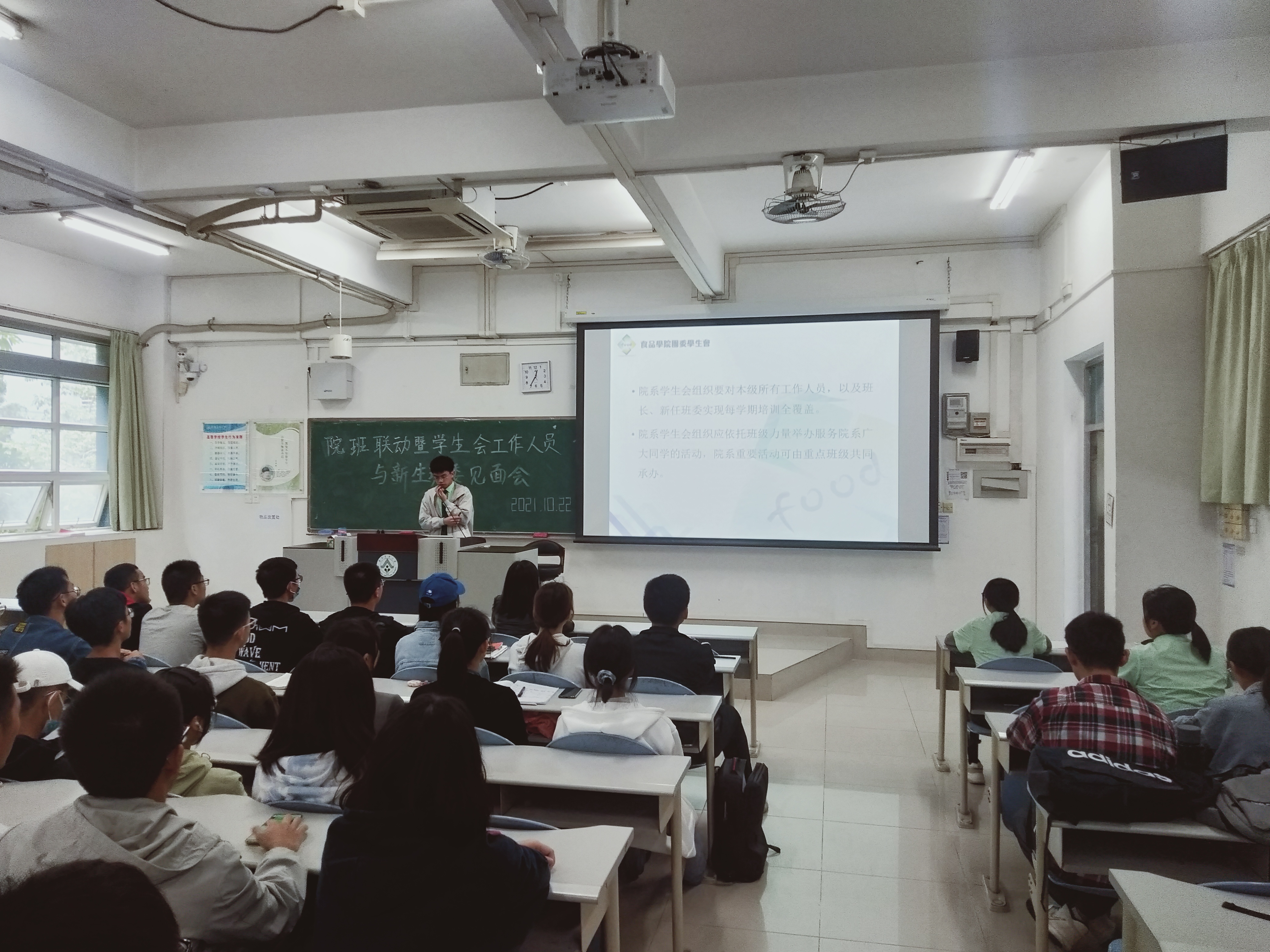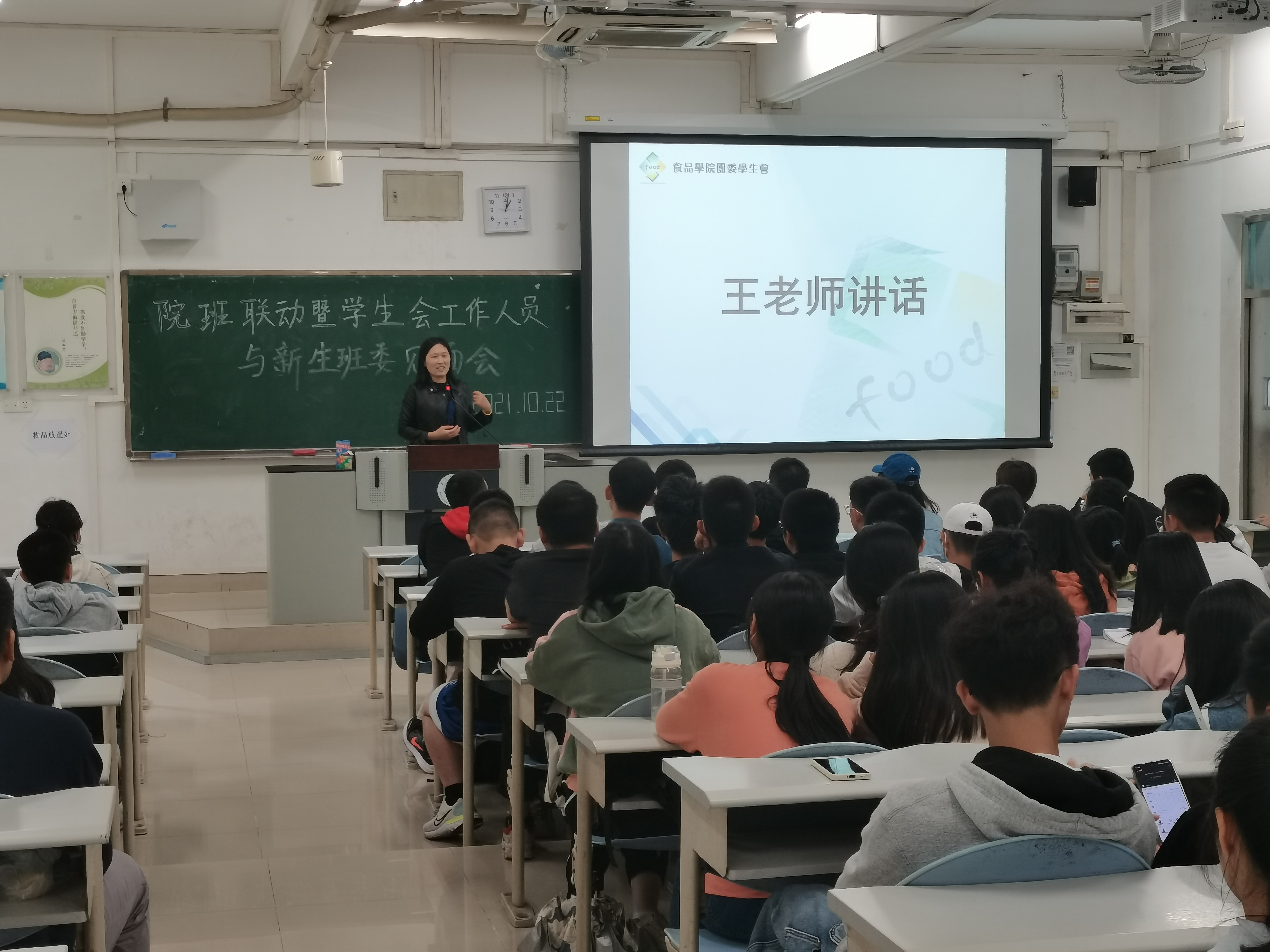 10月22日中午12:30,我院学生会主席团成员、各工作部门负责人和新生班级全体班委齐聚教五B栋304教室,食品学院学工办主任宋政老师、辅导员王曾惠老师出席本次会议。会议由学生会学习部负责人黄佶豫譞主持。