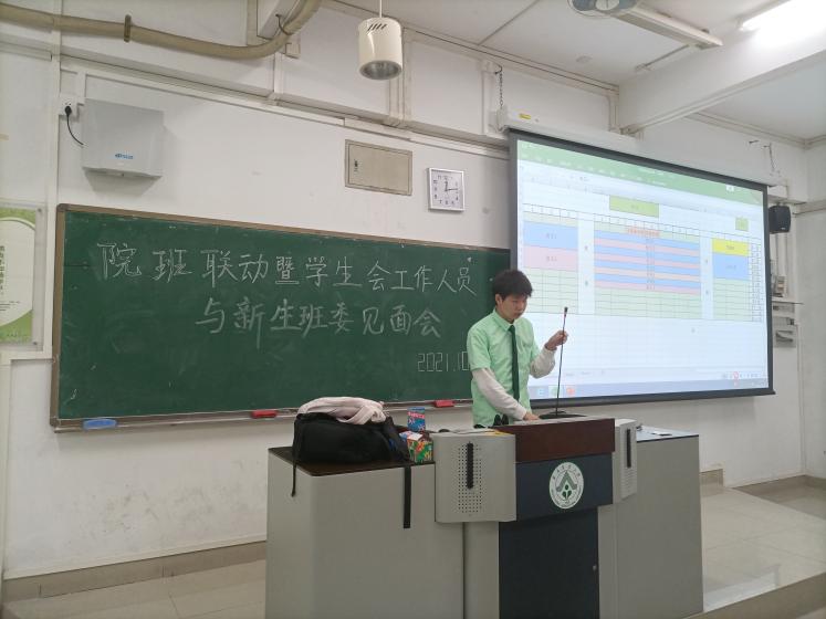 会议伊始,由学院学工办主任、21级辅导员宋政老师致辞,宋老师提到:学生会是学院学生工作的重要承担者,近几年来在全国范围内开展的学生会组织改革使学生会面临工作模式革新、组织架构精简等要求;因此落实“学院学生会-各年级级委-各班级班委”的工作制度是必然的,希望全体班委能够再接下来的联动会议里认真听讲,积极配合学院学生会工作的开展,一起为学院同学服务。