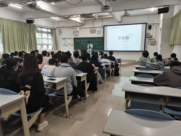 接下来由学生会主席团成员卓派民进行“院级班”联动工作机制的简要说明;生活权益部、学习部、文体部负责人分别上台作学院学生会三大服务板块的联动工作细节。