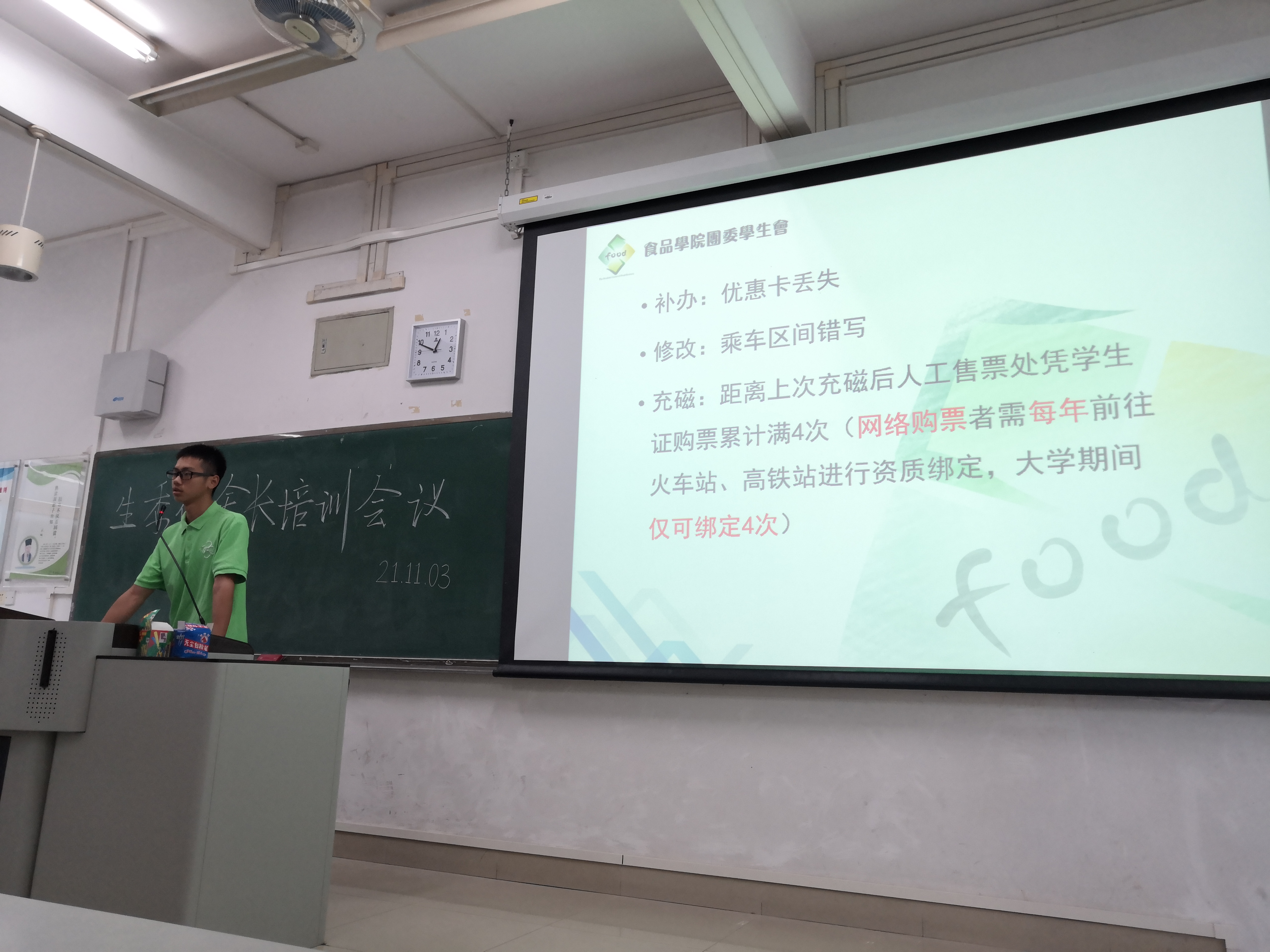 生活权益部组织各年级生活委员对学院权调工作机制、火车优惠卡充磁补办流程等内容进行讲解。