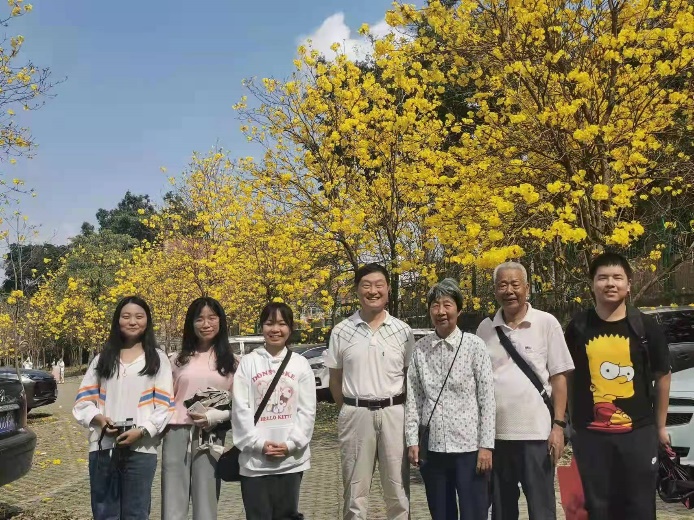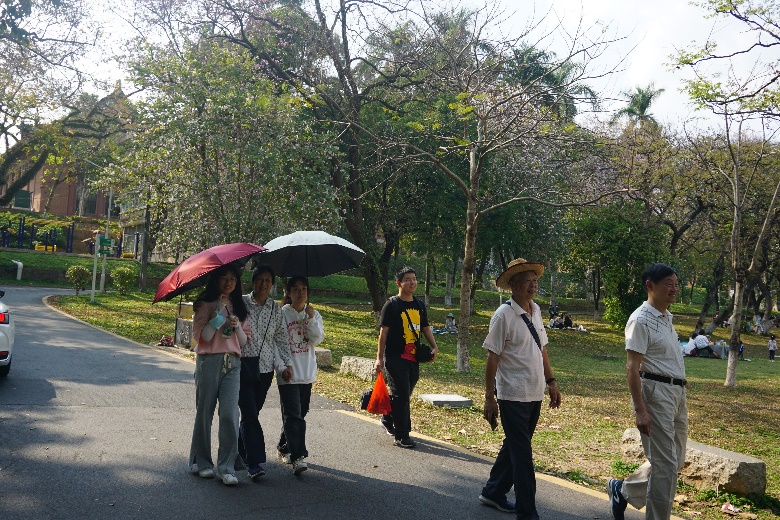 周日下午,在我院院楼集合的志愿者队伍踏上了行程,前往动物科学学院温氏楼与老师会合。随后,成功会合的大部队奔赴地标性建筑行政楼门前合影,湿地公园附近赏花游玩。在赏花过程中,老师们还亲切地向志愿者们讲述着工作经历、退休生活和那些学校历史往事。最后,志愿者们不舍地送各位老师们至华农大牌坊门口,历经近两小时的踏青活动在老师和志愿者们的欢声笑语中结束。