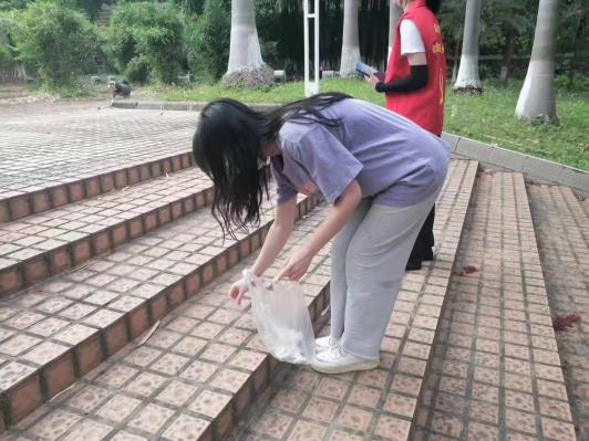 同学们分工明确,在包干区域内尽责细心地开始劳动。尽管天气炎热,但阳光并没有减少同学们的劳动热情。在劳动时间段内,路过包干区域都能看到我们学院同学辛勤劳动的身影。同学们不怕脏不怕累,弯腰拾起地上的生活垃圾,用扫把轻轻扫走道路上的枯枝落叶,温柔搬运电动单车使其规范摆放。大家不放过任何死角,将包干区域打扫干净整洁。