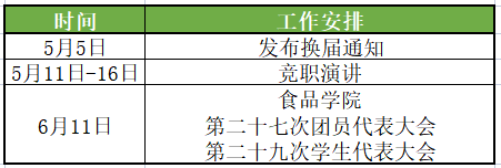 我院第二十六届第二任团委、第二十八届学生会任期将满,换届工作也即将开展。为深入贯彻落实《学联学生会组织改革方案》、《华南农业大学共青团改革方案》,推进团委、学生会各项工作,吸纳培养更多优秀学生干部人才,经学院党委同意,现公开选拔学院第二十八届团委、第二十九届学生会工作人员。本次选拔旨在选举出新一任的团委、学生会工作人员,继续为服务同学而努力奋斗,为食品学院贡献青春力量!具体通知如下: