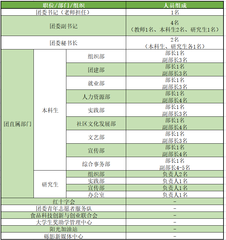 一、食品学院第二十七届团委、第二十九届学生会部门与职位设置