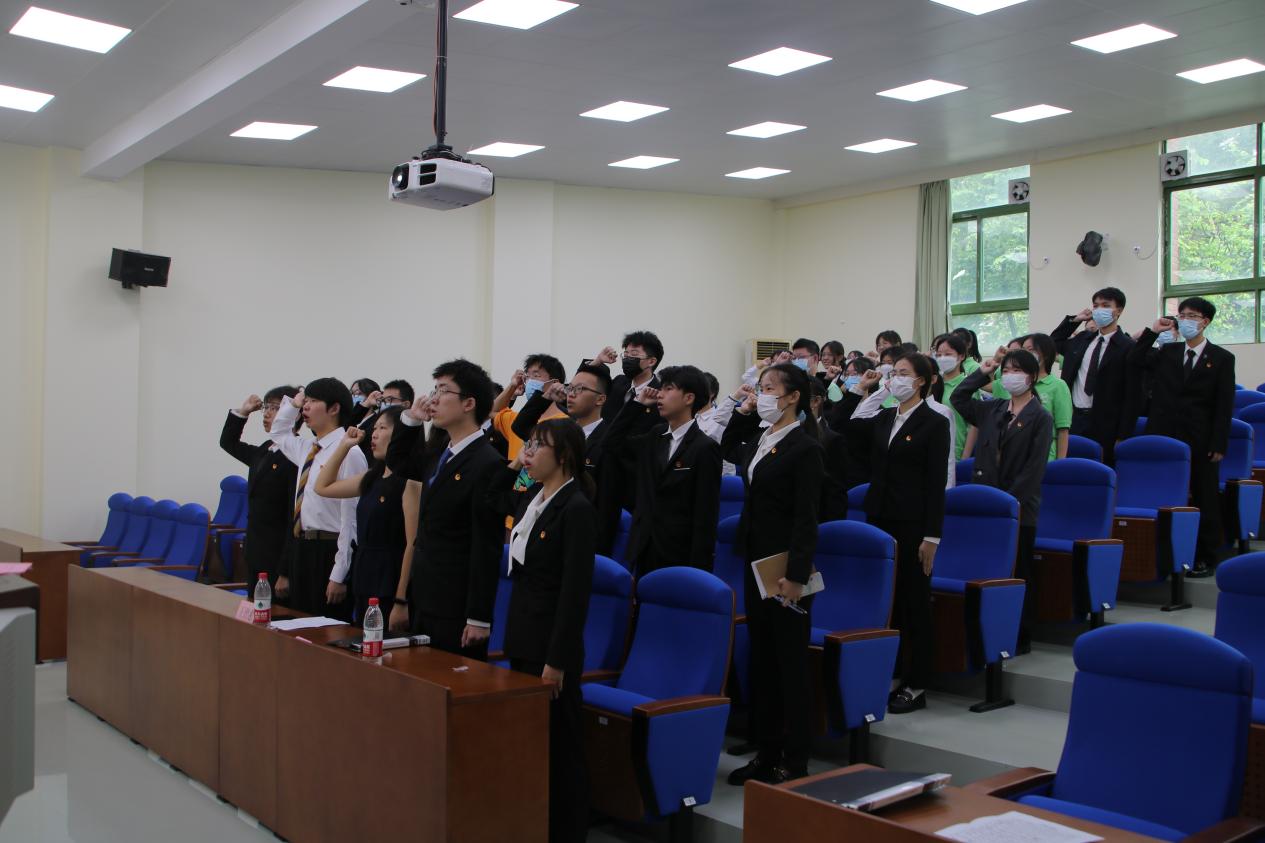 在主持人黄熙琳的带领下,新团员进行入团宣誓,老团员重温入团誓词。团员们更加深刻的领悟了身为团员的责任和使命。