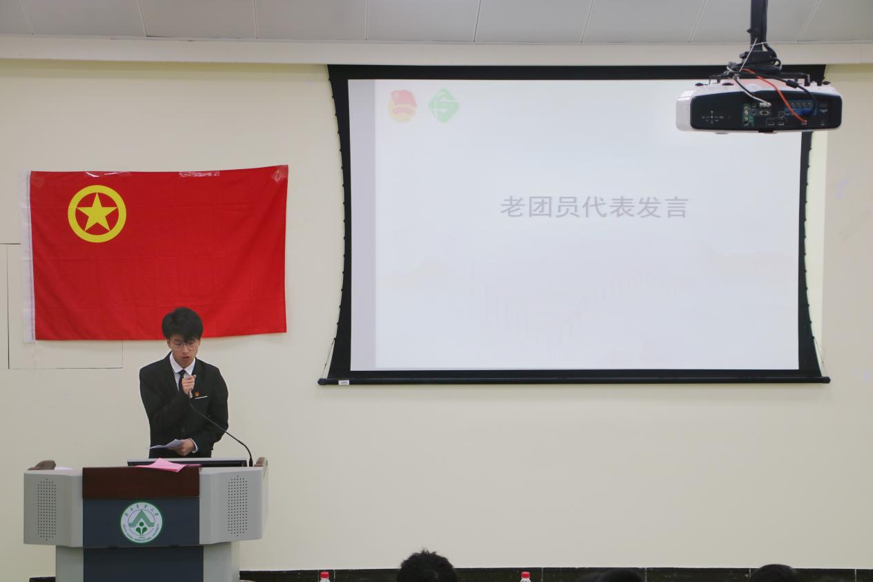随后,老团员代表蔡坤鹏发言。他对新入团的同学表示热烈的祝贺与诚挚的欢迎。然后通过自己的亲身经历,提出青年要承担时代责任,团员则需要带头尽责。青年的命运,从来都同时代紧密相连。当代青年应牢记奋斗的初心,扛起奋进的大旗,唱响奉献的高歌,踏上追梦的道路,担当作为,踏实肯干,为中华民族伟大复兴贡献力量。
