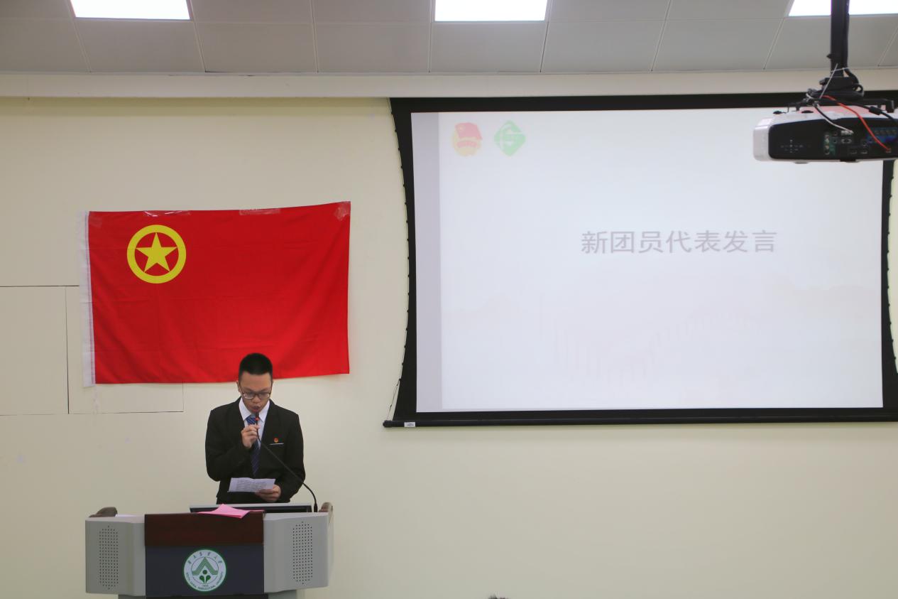 在入团介绍人代表李楷宣读了《团章》中有关团员的义务和权利的条款之后,新团员代表郭斯洲发言,他认为,成为一名共青团员,不仅仅是政治身份的转变,更多的是要履行团员的义务,承担团员的职责。身为共青团员,要刻苦学习,扎实掌握为人民服务的真本领;要坚定理想信念,在学习思想理论知识的同时也要刻苦学习专业知识,提高科学文化素养和思想道德素质,为社会主义现代化建设贡献力量。