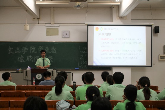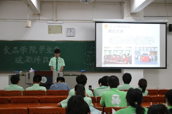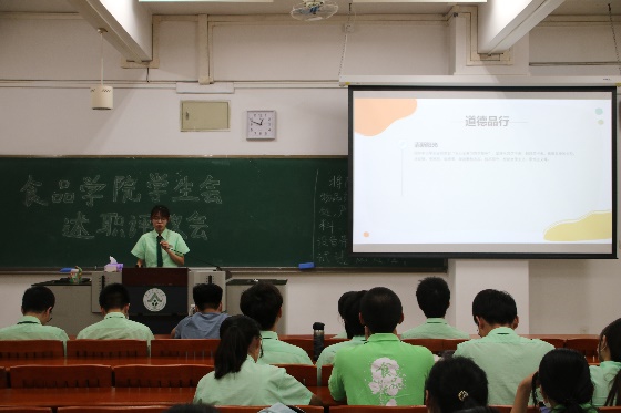 本次述职会议上,食品学院学生会主席团成员与各工作部门负责人就本学期任职以来在政治态度、道德品行、学习情况、工作成效与纪律作风等方面的情况进行汇报,其中重点陈述了在这一学期中个人所负责工作的完成情况。