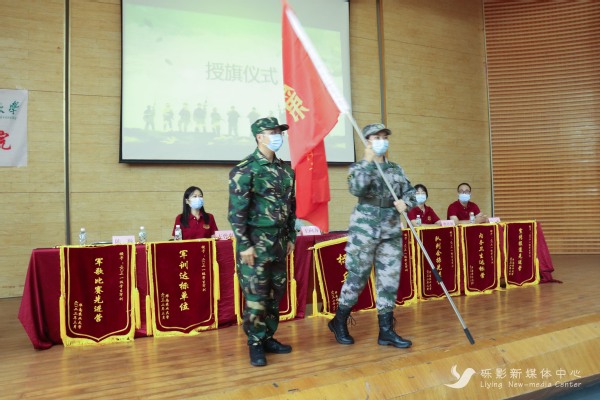 大会还举行了授旗仪式,肖华副书记传授营旗,各领导老师为参训学员代表佩戴铭牌。