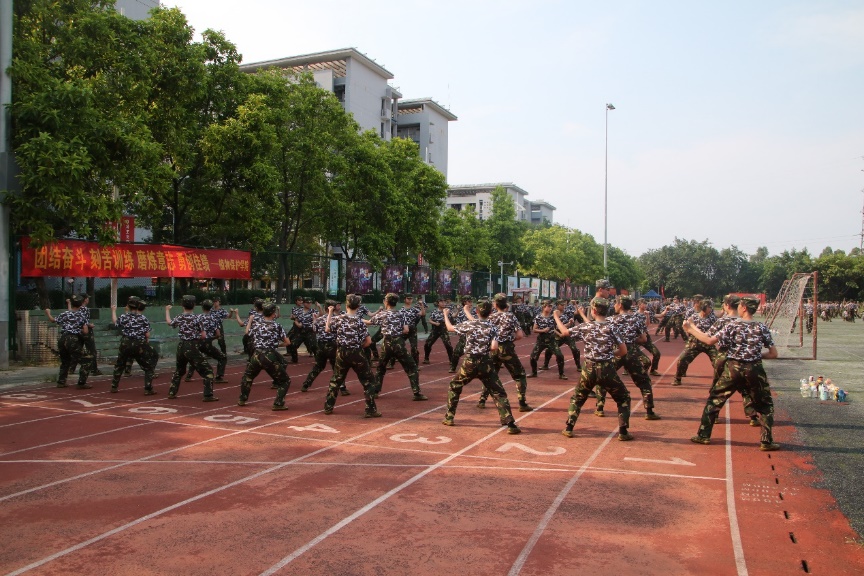 “青春须早为,岂能长少年。”食品新生们在教官的指导下开始学习军体拳。一声声“哈”“哒”喊出了新生们的气势,喊出了食品学院的朝气蓬勃。