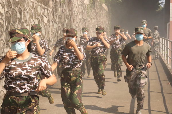在教官的督促和鼓励下,食品兵们完成了超过一半的行军路线,来到了西园后巷的染毒地段进行演习。食品兵们听从指令,动作迅速而又不慌不乱,将毛巾浸湿捂住口鼻,有条不紊地通过烟雾区,顺利完成了穿越染毒区演习,提升了自我防护意识。
