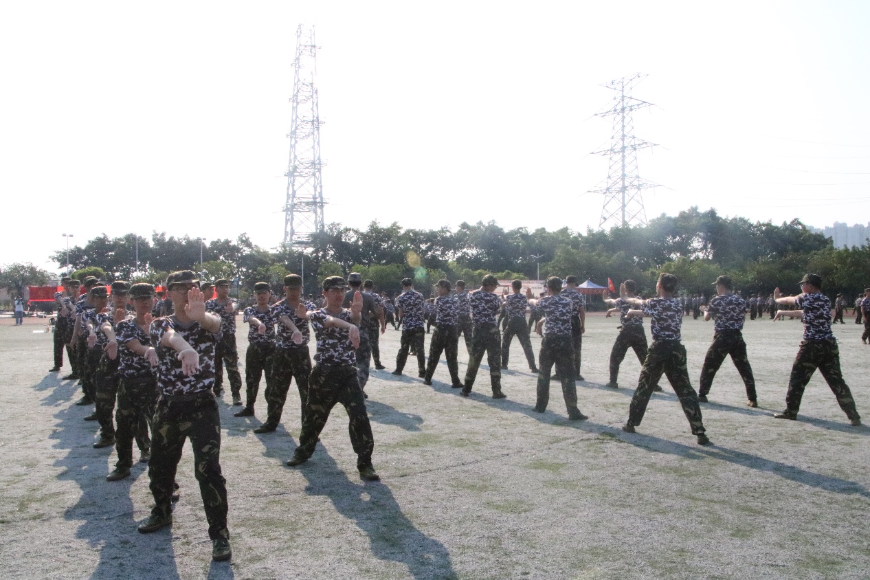 烈日当空,映照在食品新兵们稚嫩却坚毅的脸庞之上。一声声“呵”!“哈”!“哒”!尽显食品学子们一往无前的奋斗姿态。在英姿飒爽的教官们的认真教导下,学员们一遍又一遍地练习军体拳术,“弓步冲拳,上!穿喉弹踢,上!” 烈日依然挡不住食品新兵们的热情。