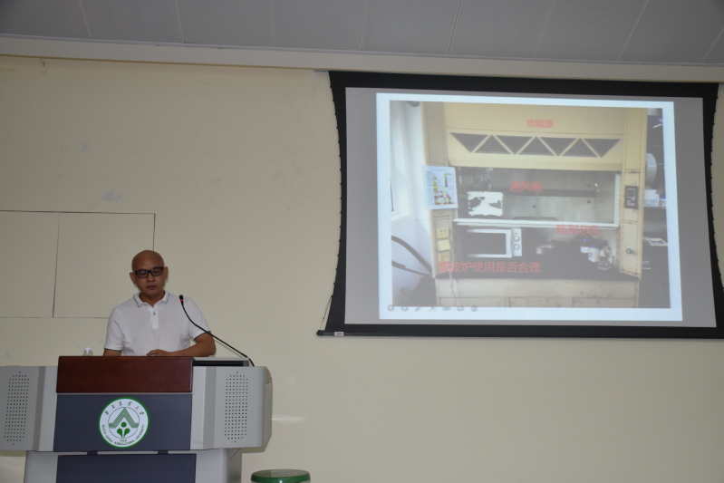 消防安全培训中,吴经理结合我院实验室的实地检查情况,对师生常常忽略的电线裸露、充电器发热、易燃物堆积等消防安全隐患进行一一分析,并对实验室安全事故类型、实验室安全相关法规、实验室安全守则以及常见事故处理方法作了细致讲解。通过真实的案例,为全体与会人员上了一堂通俗易懂、实用性强的实验室消防安全知识培训。