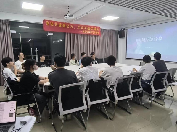 为进一步发挥学生中国共产党员在学风建设中的模范带头作用,帮助低年级学生了解考研信息,合理规划备考计划,增强考研信心,食品学院团委、各本科生党支部、2020级本科生团总支联合举办“党团共建聚合力,互学互助促提升”考研学习分享会。