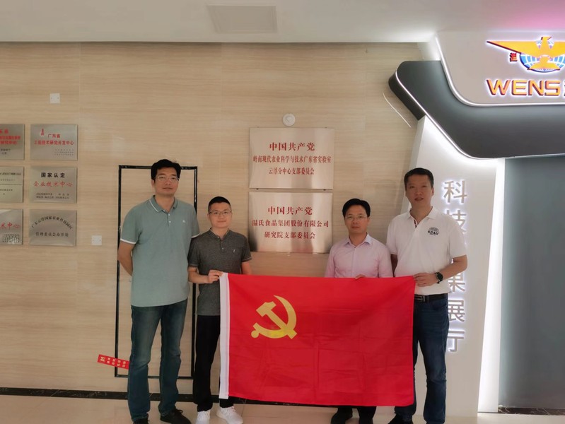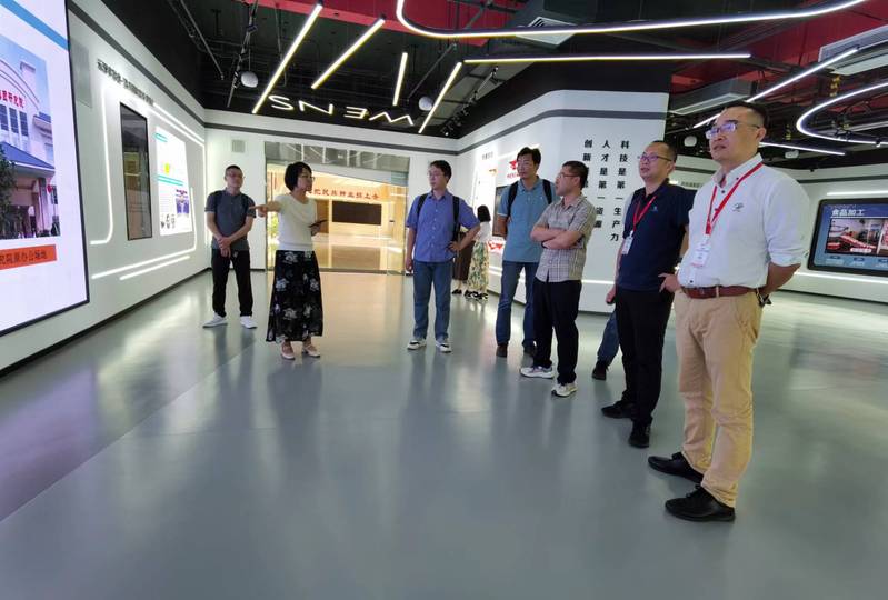 支部中国共产党员代表一行首先来到广东温氏佳味食品有限公司,调研了解公司鲜熟鸡的现宰现煮、低温慢煮、速冷锁鲜等生产线,以及公司现有产品布局和市场销售情况。随后,一行来到广东温氏食品集团股份有限公司研究院,参观了公司科技成果展厅以及科研实验室和集团附属检测子公司,对公司在党建引领、科研平台、科研成果以及助力国家乡村振兴等方面取得的业绩留下了深刻的印象。然后,杜冰副院长、支部中国共产党员代表们与研究院领导举行了座谈,双方围绕温氏集团在食品加工与包装领域的迫切需求,尤其是肉禽预制菜的加工开发进行了广泛的交流与展望,并达成了在预制菜加工领域进行合作开发的初步意向。