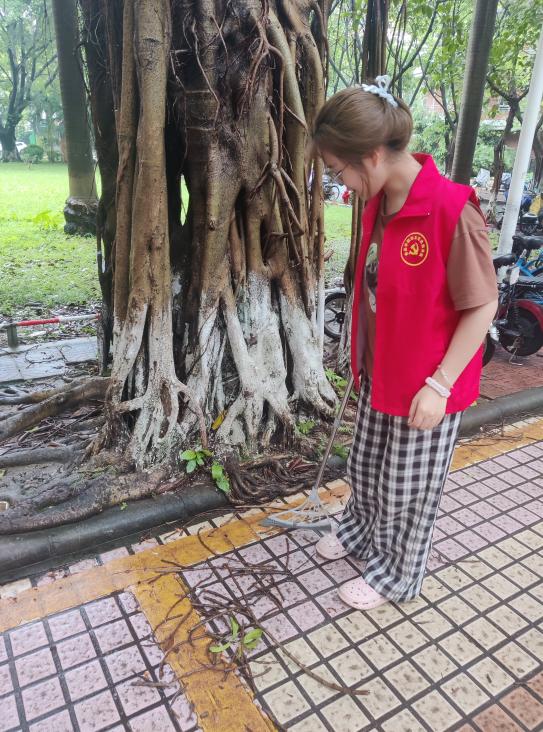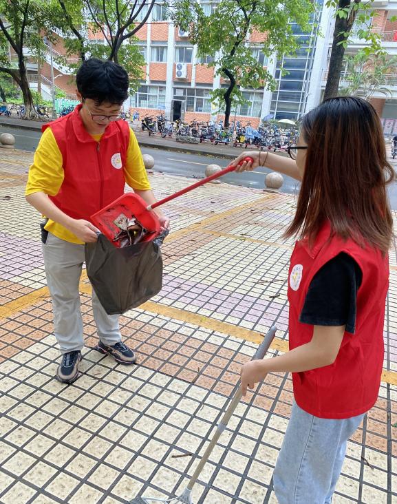 义务劳动当天,同学们依次领取并穿戴好志愿者马甲,以宿舍为单位前往所负责的区域进行打扫。打扫区域主要包括食品学院院楼及第三教学楼附近的校道和绿化地带。同学们发扬不怕苦不怕累的精神,积极拾捡垃圾,打扫枯枝落叶,并将沿途区域的电动车摆放整齐。