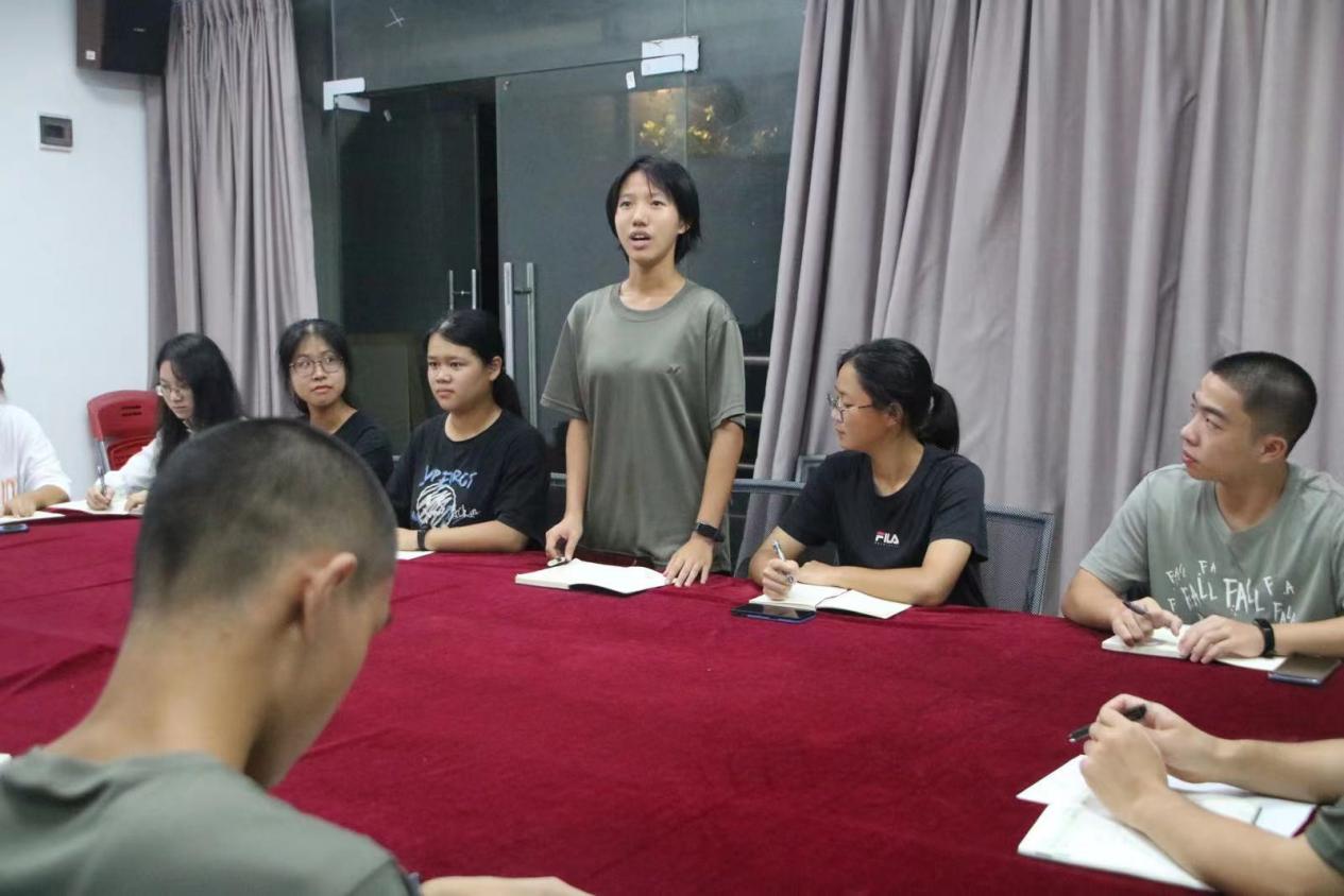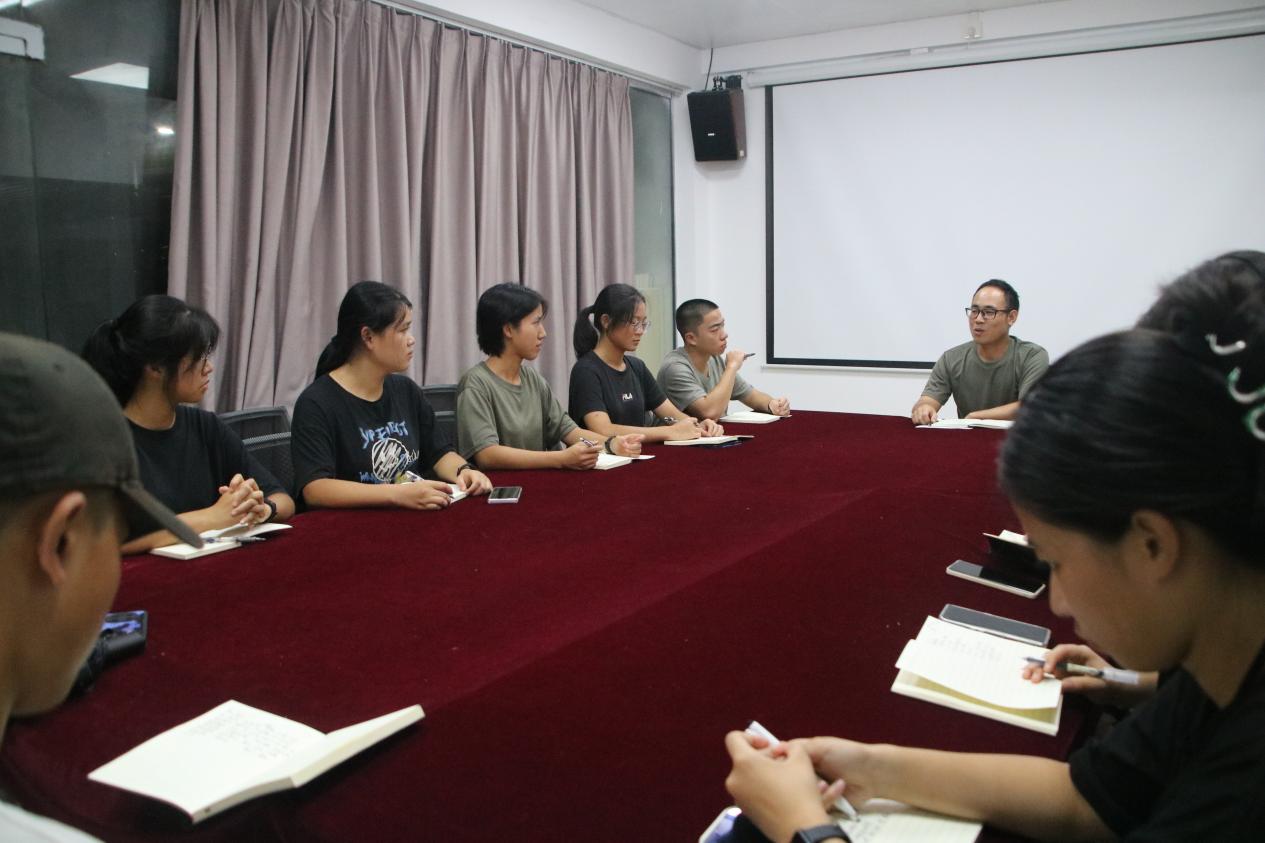 9月2日晚,食品学院军训教官见面会暨军训动员会于食品学院启林南思政工作站顺利召开。食品学院2023级新生辅导员、三团十一营指导员余聪老师和全体教官参与会议。
