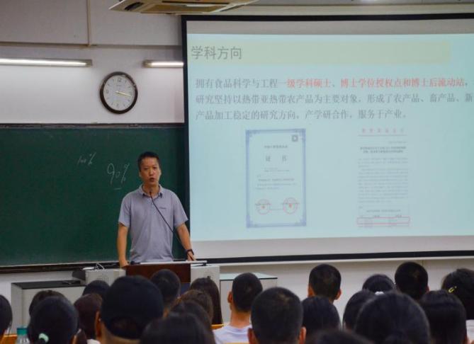 为帮助新生深入了解自身专业情况,食品学院于9月5日下午在第三教学楼开展了院内各专业的专业教育课。本次课程由多位资深教授主讲,各助班和阳光员也到现场与新生们一起聆听。
