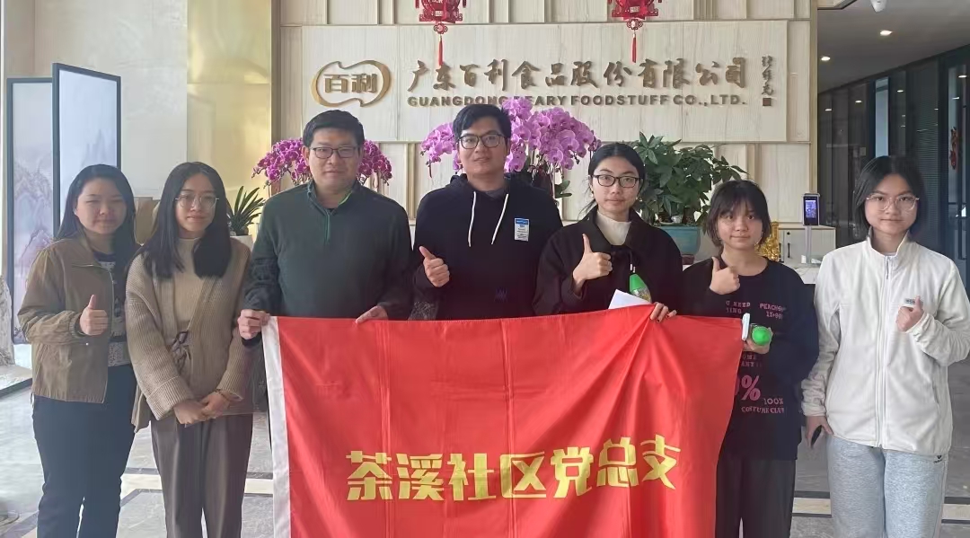 同期,李璐瑶、廖幸怡等6名学员参加的“莞香传承”调研队,在团委书记黄怀宇老师带领下,深入东莞市茶山镇茶溪社区、上元村、寒溪水等十个行政村(社区),开展为期两天的“把脉问诊”。队员们分组走访各村党群服务中心,与村两委委员围绕乡村发展、基层治理、产业现状等主题展开深度访谈。此外,团队还聚焦茶山镇“中国食品名镇”的产业优势,走访百利、康美臣、新盟等本土食品企业,深入了解其生产工艺与市场布局。康美臣公司从传统月饼转型鸭货市场的创新案例,让学员们深刻认识到“产业转型需紧跟政策与市场需求”。