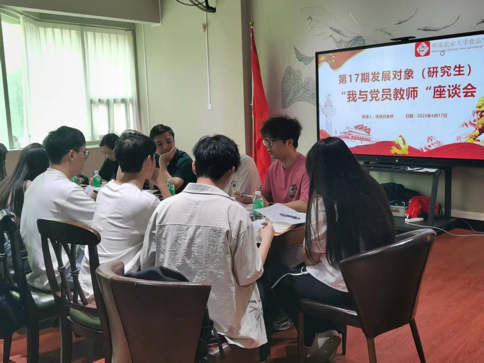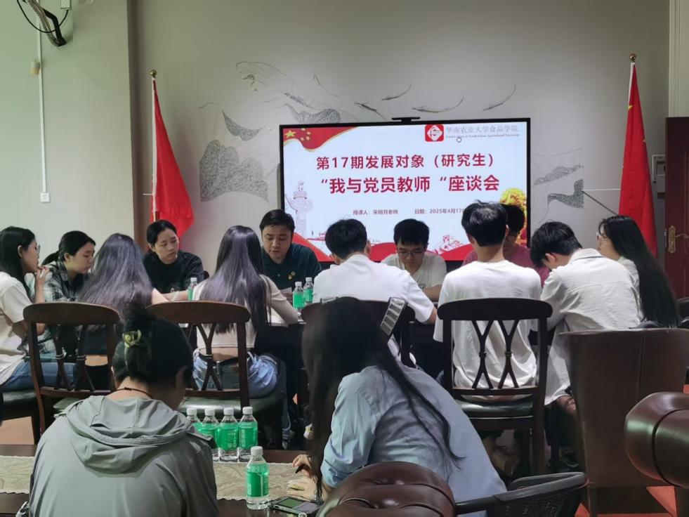 为深入贯彻中央八项规定精神学习教育,深化党员发展对象对中央八项规定精神的认识,推动从“关键少数”到“绝大多数”的全员覆盖,以实际行动在学生群体中树标杆、作示范。2025年4月17日下午,第17期党员发展对象(研究生)之“我与党员教师”座谈会在食品学院315顺利举行。本次座谈会的主讲嘉宾是食品学院食品科学系副主任、工会主席宋明月老师。