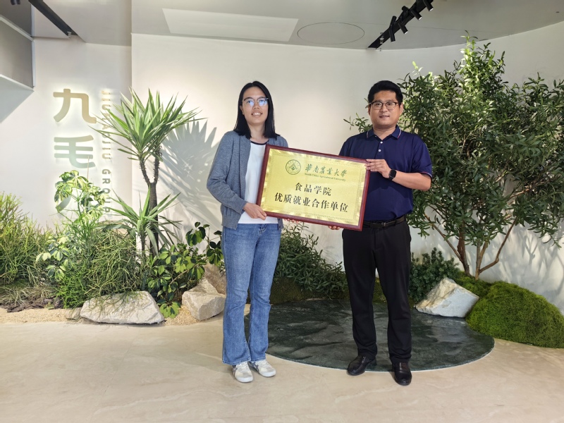 为深入推进校企合作、产教融合,发挥实践教学在人才培养中的作用,5月15日,我院党委副书记徐聪聪一行赴九毛九集团开展实地考察交流,并举行“食品学院优质就业合作单位”授牌仪式。