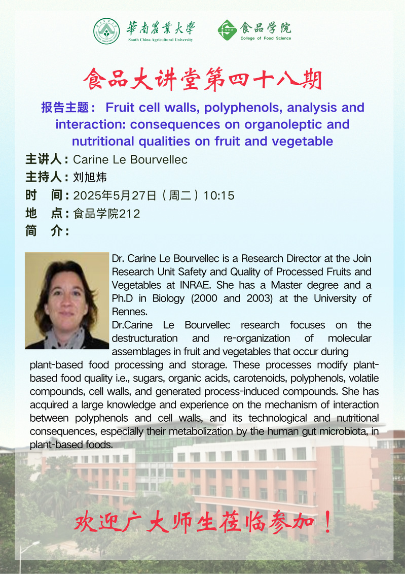 食品大讲堂第四十八期:Fruit cell walls, polyphenols, analysis and interaction: consequences on organoleptic and nutritional qualities on fruit and vegetable