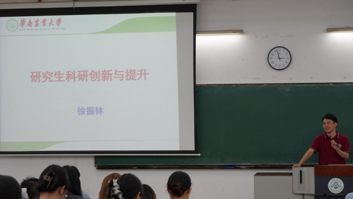 徐振林院长则从个人撰写、发表论文,申报课题的经历出发,为研究生新生们带来一场“研究生科研创新与提升”专题思政课。徐院长强调,研究生阶段是培养创新能力、塑造学术品格的关键时刻。各位新生要及时转换角色,从“跟着走”到“试着走”再到“信步走”,找到自己的科研成长之路。最后,徐振林院长寄语全体新生,要胸怀“国之大者”,自觉将“小我”融入“大我”,在科技创新、产业升级、服务社会中寻求奋斗方向,练就过硬本领,展现青春作为,以青春“食”力在强国建设、民族复兴伟业中绽放光芒。