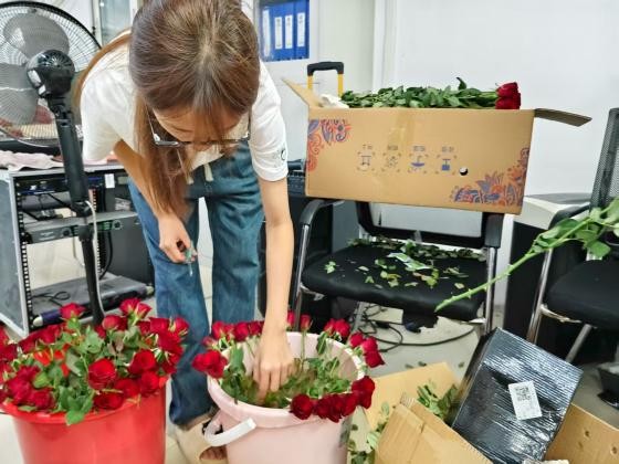 为确保活动的顺利开展,我院团委学生会提前组织志愿者们对采购的玫瑰花进行打理,为其修去冗枝杂叶、裁剪花茎,以利水分吸收。每一支绽放的玫瑰,不仅凝聚着同学们的赤诚心意,更象征着学子们对老师如花般灿烂而真挚的感恩之情。