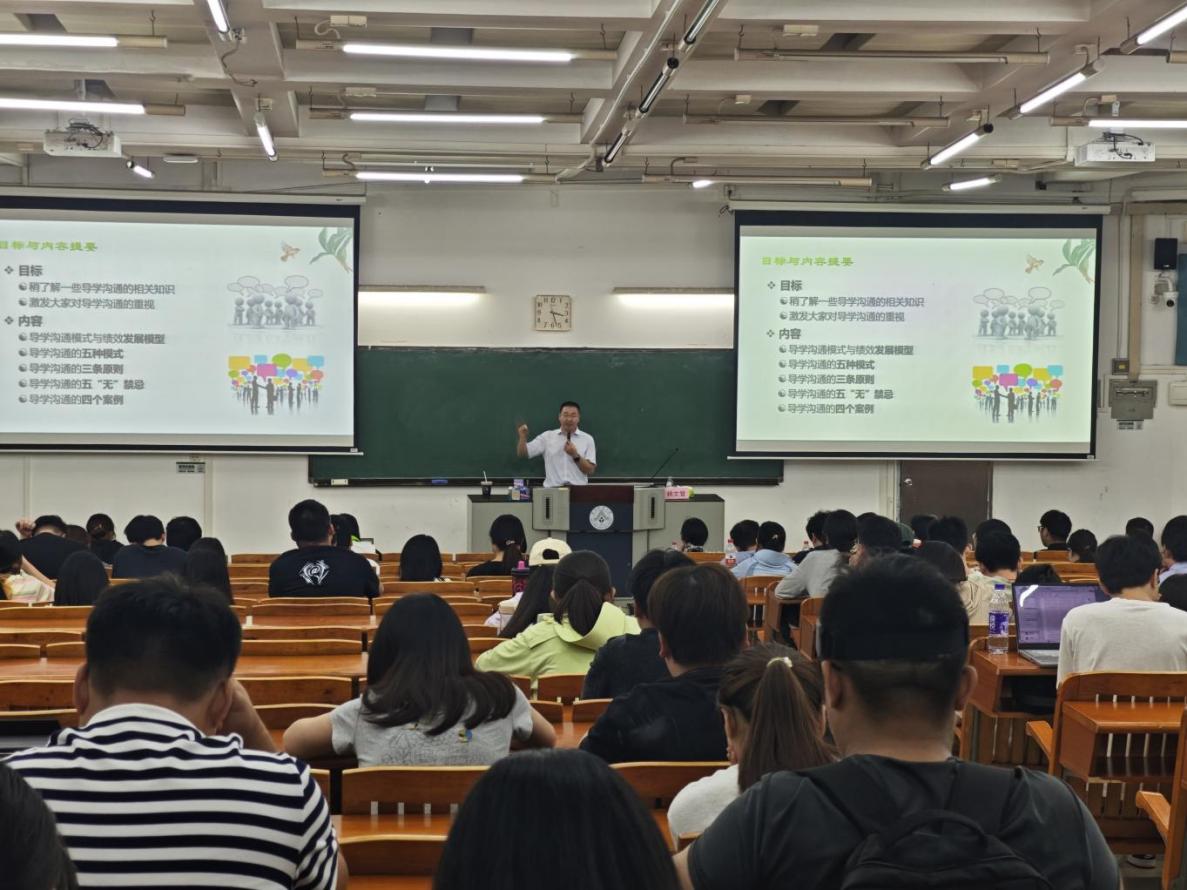 讲座中,杨文登老师结合多年教学经验,针对研究生常见的学业压力、人际关系和情绪管理问题,进行了深入浅出的解析。他提出导学沟通的五种模式、三条原则、五“无”禁忌,强调心理健康是学生全面发展的基石。杨老师通过四个真实案例分享,引导同学们构建积极心态,学会与导师沟通。
