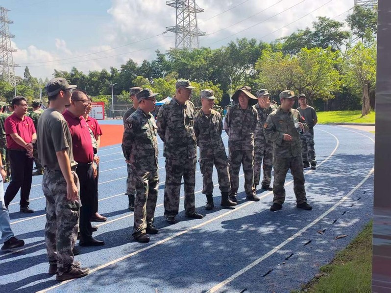 张阳武书记耐心观看训练内容,详细了解训练进度、后勤保障及学生身体状况,充分肯定同学们艰苦的训练成果。他体恤同学们的辛苦,对同学们展现出的良好精神风貌和严格的组织纪律性给予了高度赞扬,并鼓励大家要好好利用军训这段宝贵经历,磨练自己的意志品质。